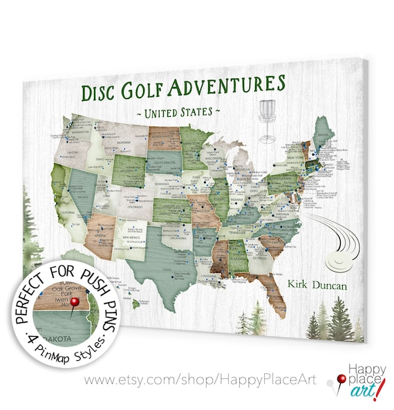 Disc Golf Push Pin Map Usa Best Courses Each State In Usa Etsy