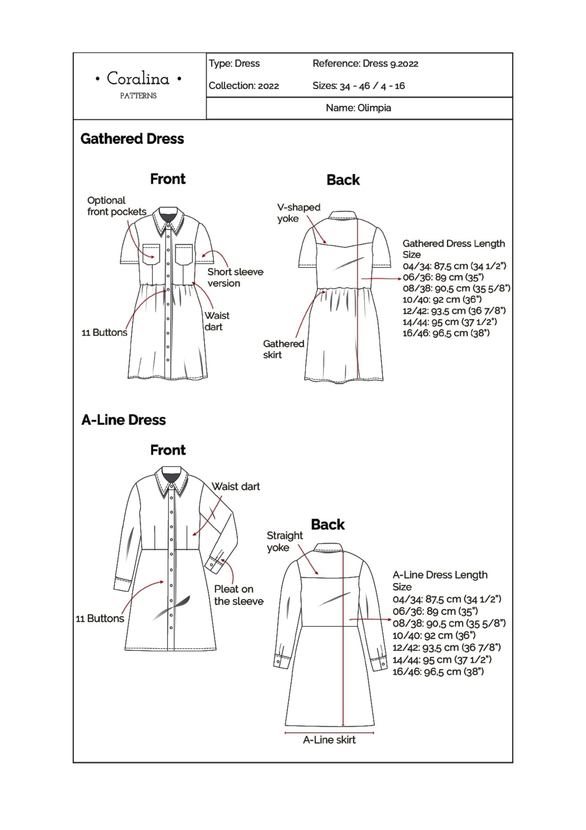 Denim Shirt Dress Pdf Sewing Pattern Sizes 4 16 Eu 34 46 Etsy